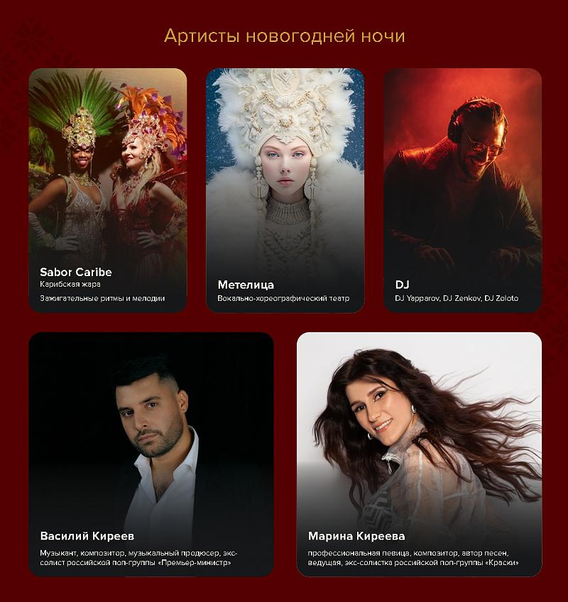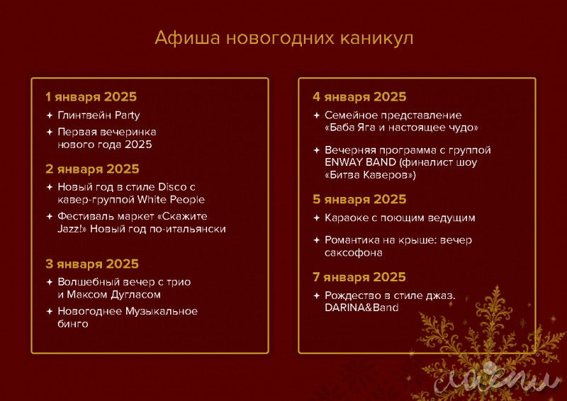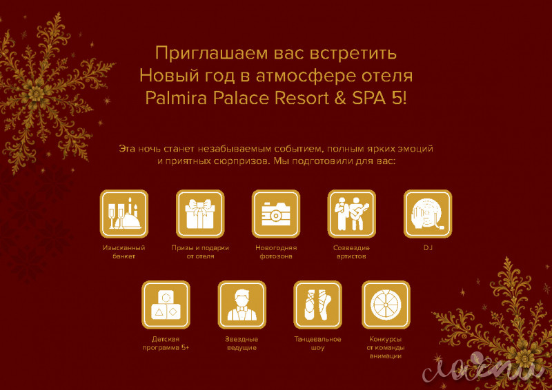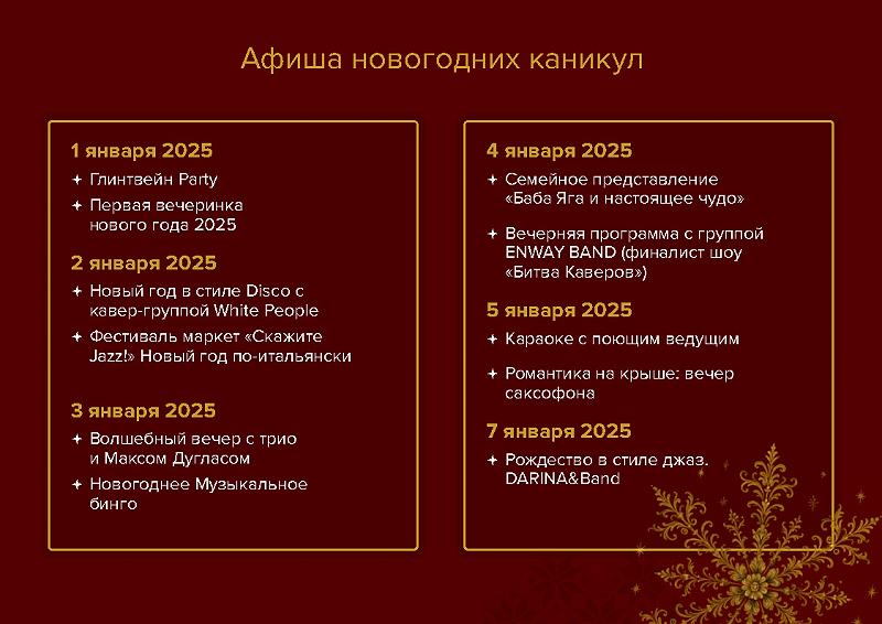 Стоимость новогоднего банкета 25000 руб./чел. в ресторане Парадизо и ресторане На Крыше.
